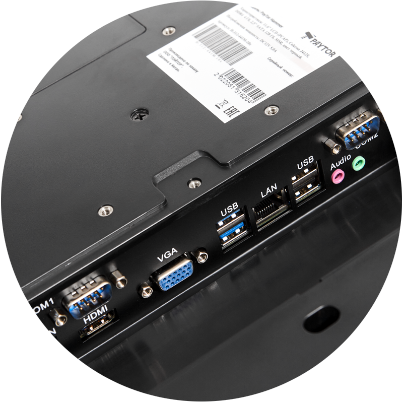Терминал отличается повышенной производительностью, благодаря полноценному процессору Intel Celeron J4125 и жесткому диску на 128 ГБ.