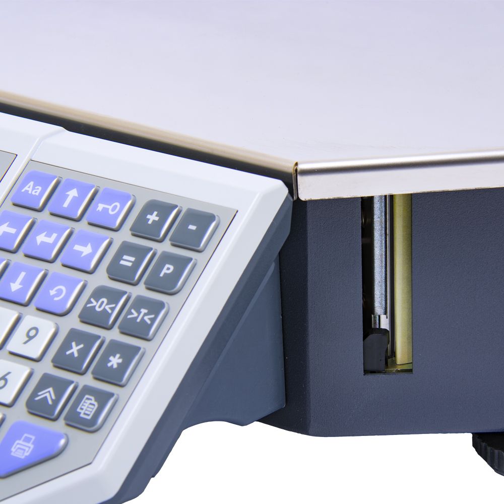 ШТРИХ-ПРИНТ ФI - фасовочные весы с печатью этикетки в привлекательном дизайне. Клавиатура весов и дисплей оператора с целью эргономики размещены внизу, так что оператору удобно вводить номер PLU товара.