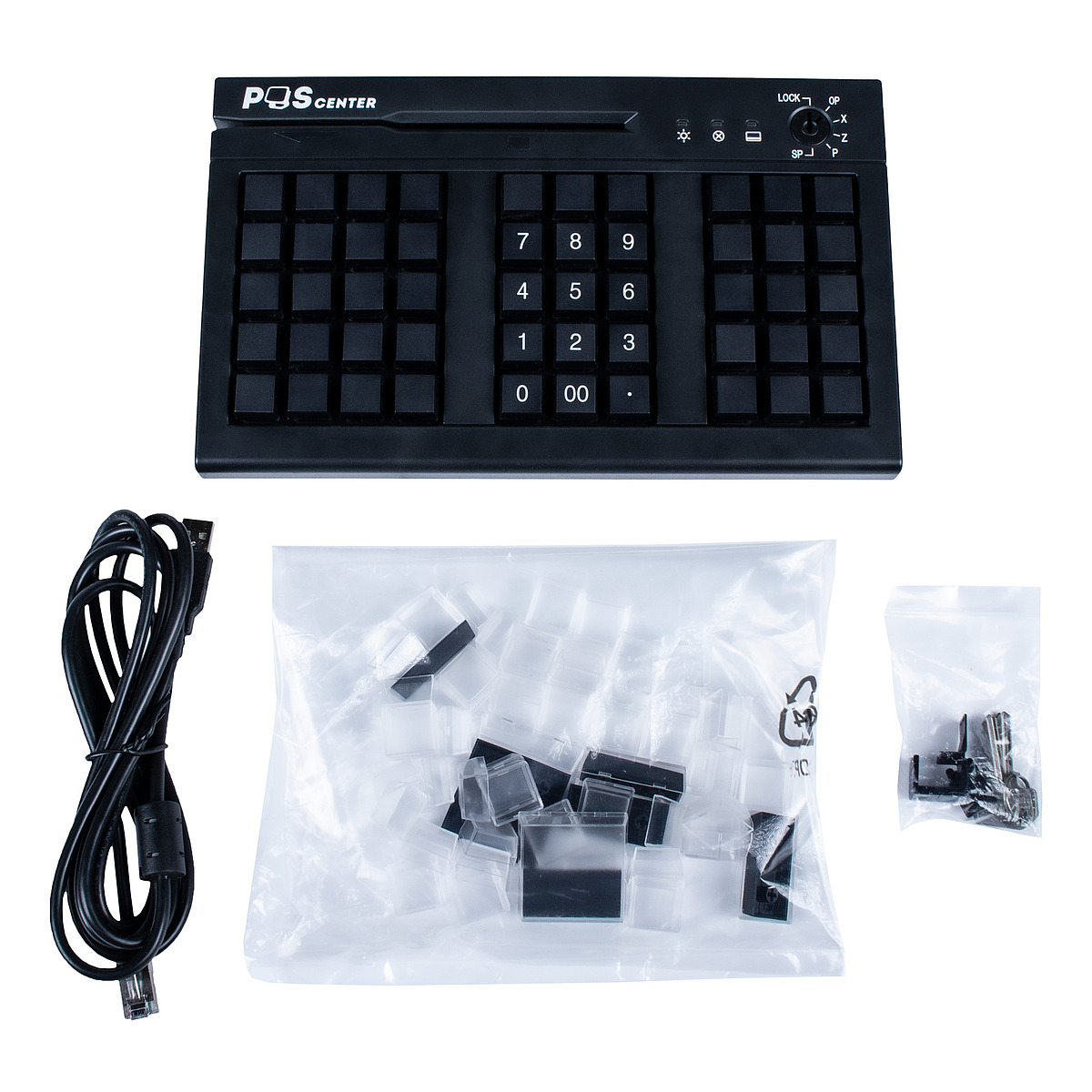 S50A – компактная многофункциональная программируемая POS-клавиатура со встроенным считывателем магнитных карт и 6-позиционным замком для различного уровня доступа пользователей (администратор, старший кассир, кассир и др.). 50 клавиш мембранного типа обеспечивают удобный и быстрый ввод данных, которые при необходимости можно сохранить в устройстве на срок до 100 лет. Также в комплекте предусмотрены сдвоенные клавиши, прозрачные колпачки для клавиш и съемный кабель USB Type-A - RJ-45 с ферритовым кольцом для синхронизации с устройствами различного типа. Разъёмы для подключения интерфейсного кабеля расположены на задней панели.